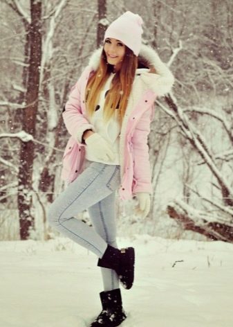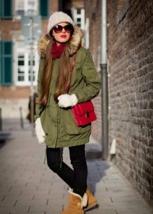 En parkas och vantar är en mycket vanlig kombination. Bekvämligheten och praktiska egenskaperna hos sådana ytterkläder har länge uppskattats av alla älskare av snyggt utseende och känner sig väldigt bekväma. Och i kombination med vantar gjorda av ludd eller naturlig ull görs denna tandem så mysig och varm som möjligt.