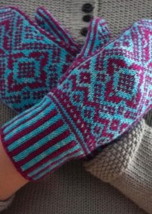 Kombinationer av olika nyanser är också intressanta - tvåfärgade modeller där till synes motsatta färger kombineras (till exempel blått och orange, grönt och aqua) ser ganska extravaganta och djärva ut. Kombinera dessa vantar med en halsduk med en av dessa färger, så blir din look väldigt stilren och sofistikerad.
