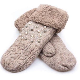 Snygg modell som låter dig hålla händerna varma och se väldigt stilren ut. Värme hålls kvar på grund av isolering, som nödvändigtvis finns inuti vanten, annars kommer den helt enkelt inte att utföra sin funktion. Mycket ofta innebär utformningen av sådana vantar uppkomsten av pälsskiktet till utsidan, vilket är en extra dekoration och skydd mot inträngning av kall luft inuti.