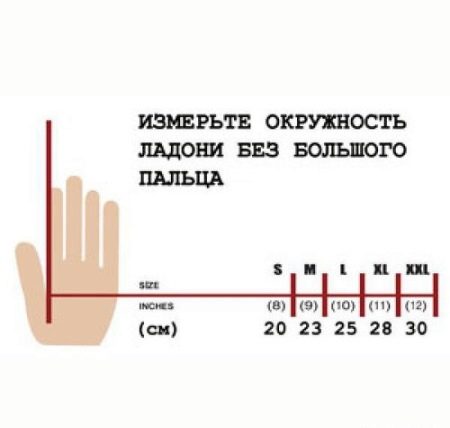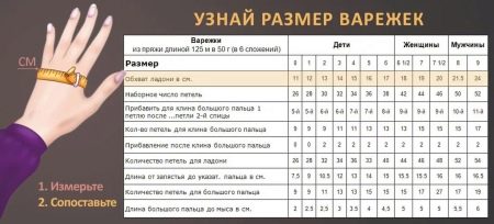 För att undvika detta är det mycket viktigt att bestämma rätt storlek. För att göra detta, mät handflatans bredd vinkelrätt mot tummen på linjen där resten av fingrarna börjar. Detta värde kommer att vara storleken på vantarna. I den moderna storlekstabellen motsvarar storlek 8 (20 cm) markeringen S, storlek 9 (23 cm) - M, 10 (25 cm) - L, 11 (28 cm) - XL och 12 (30 cm) - XXL .